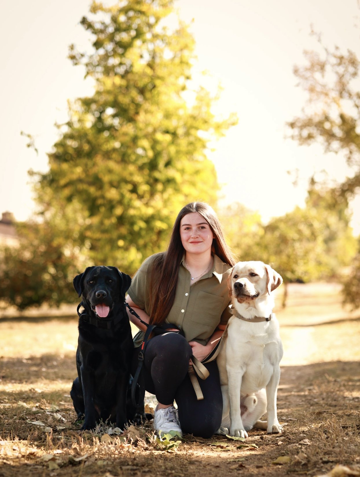 Hi, I’m Ryann! I’m a professional dog trainer specializing in service and therapy dog training, as well as puppy development and basic obedience. My journey into dog training began at 17, after being diagnosed with MS and needing a service dog. Instead of purchasing one, I trained my own, and quickly discovered a lifelong passion for helping others through the power of dog training.